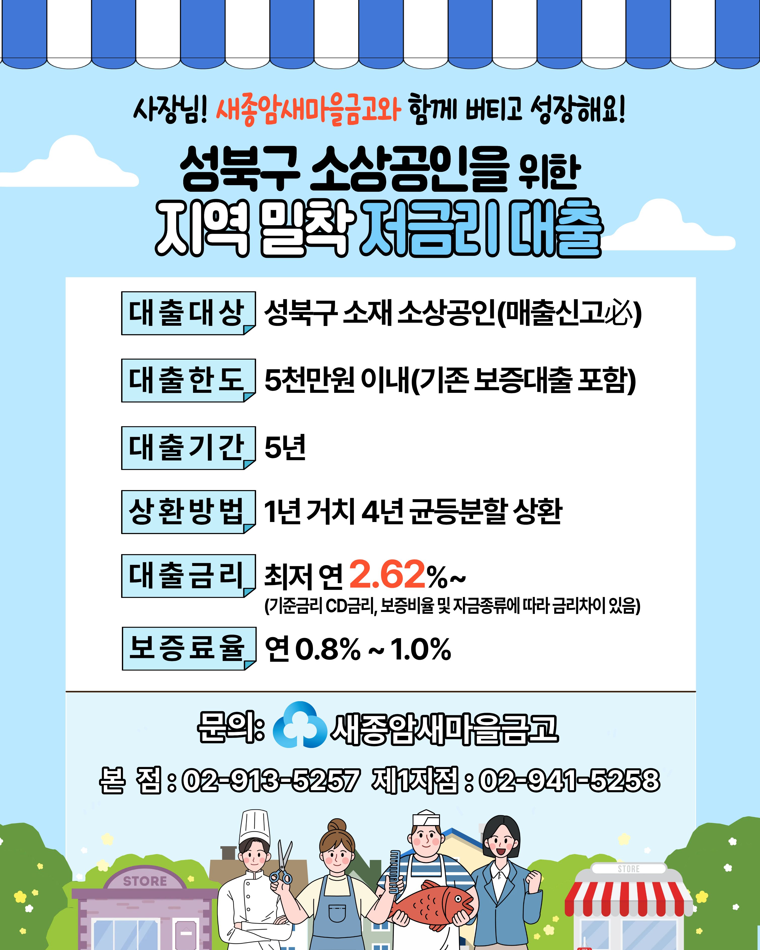 최저신용자를 위한 자금 지원! 새종암새마을금고가 서민금융을 책임집니다.